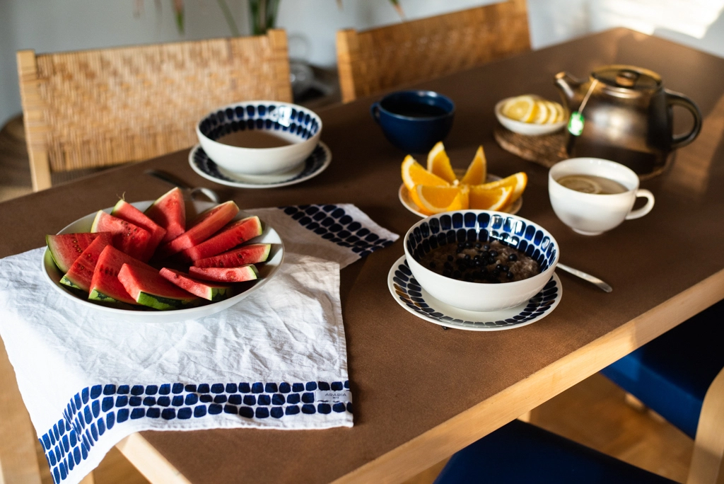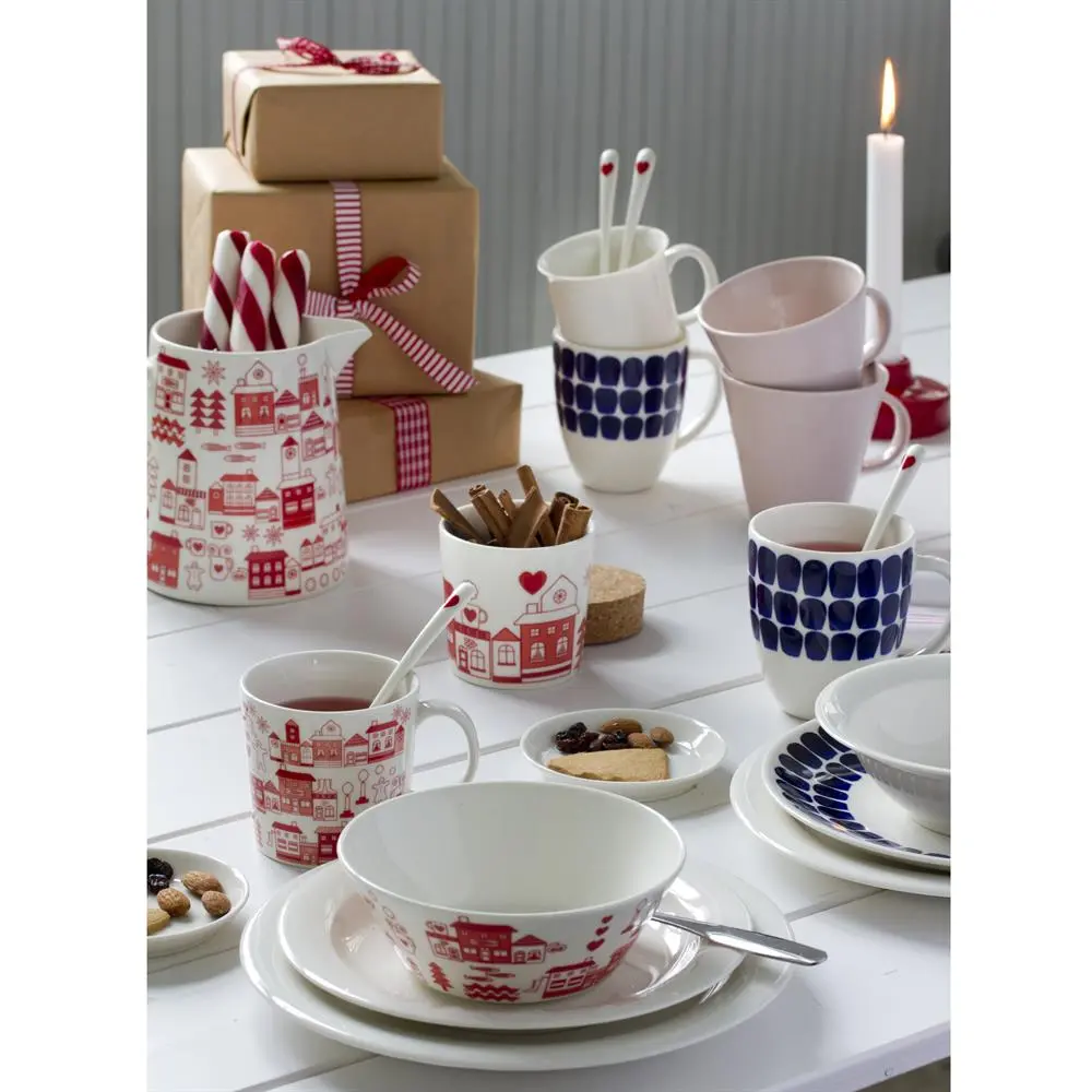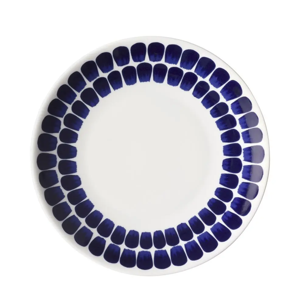 Este bonito plato de postre 24h Tuokio es una de las piezas que forman la preciosa vajilla de porcelana 24h, creada por Heikki Orvola para Arabia en 1996. En el otoño del 2011, la serie 24h se actualizó con hermosas decoraciones azules y nuevo nombre: 24h Tuokio. La serie incluye plato, cuenco, taza de café, platillo (se vende por separado), taza y jarra.