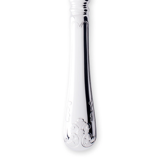 El bello y exclusivo cuchillo de comida en plata nueva pertenece a la cubertería Gammal Fransk de la marca sueca Gense que cuenta con un patrón clásico realmente trabajado con hojas de acanto. Esta cubertería neoclásica tiene sus orígenes en el siglo XVIII y durante el siglo XIX fue una de las cuberterías más popular en Suecia. Gense es uno de los principales productos de cubiertos de plata a nivel europeo y todos sus cubiertos se fabrican en Suecia por orfebres altamente cualificados. La cubertería Gammal Fransk combina modernidad con tradición y sin duda, decorará tu mesa de manera elegante y única. Combina el cuchillo de comida con el resto de cubiertos de la misma cubertería Gammal Fransk.