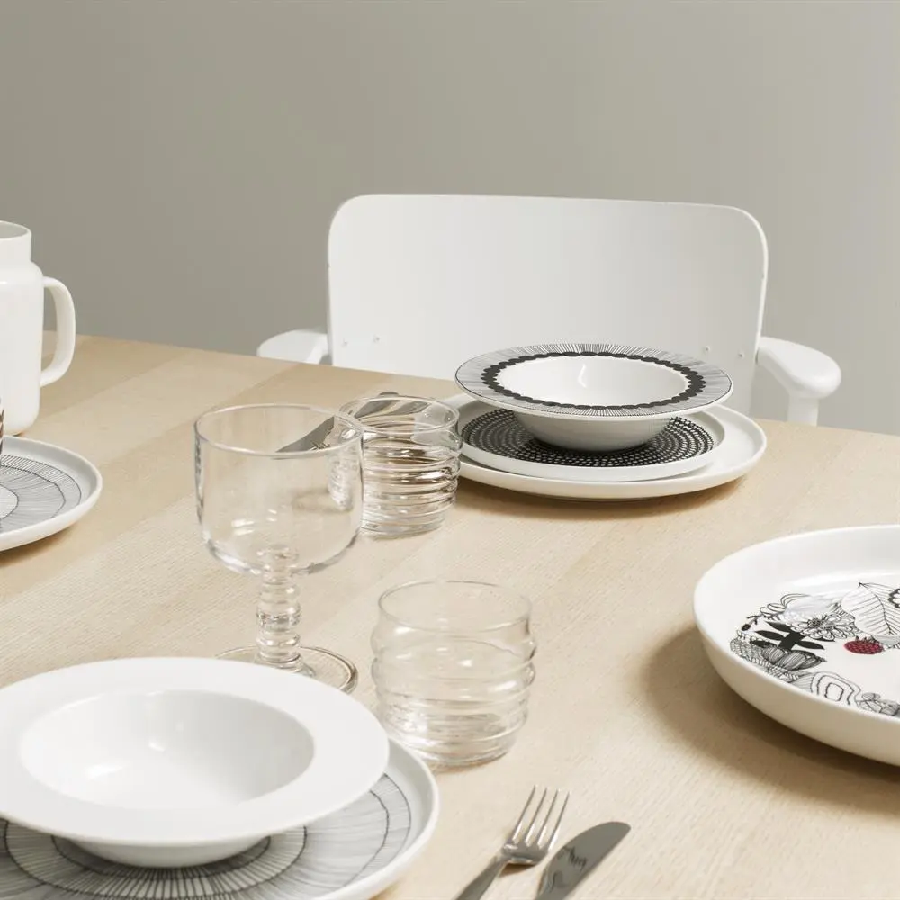 Pon tu mesa con el bello plato Räsymatto de la marca finlandesa Marimekko. El plato está hecho de cerámica de gres y viene decorado con un hermoso patrón a puntos, obra de la diseñadora Maija Louekari. Räsymatto forma parte de la serie Siirtolapuutarna, ¡una serie moderna y atemporal que se ha convertido en todo un clásico de Marimekko! Hazlo coincidir con el resto de piezas incluidas en las vajillas Räsymatto y Siirtolapuutarna de Marimekko.