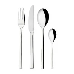La cubertería Lake de 24 cubiertos de la marca sueca Scandi Living es una elegante serie de cubiertos en acero inoxidable de alta calidad con mangos de formas suaves, que proporcionan un buen equilibrio y hacen que los cubiertos se adapten bien a la mano. El diseño ligeramente angular en el extremo más alejado de los mangos crea un bonito contraste con el diseño por lo demás suave. El juego de cubiertos Lake se puede utilizar tanto para todas las comidas del día como para todas las fiestas del año.